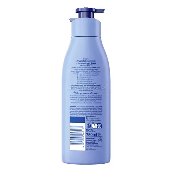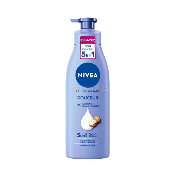 Le Lait Hydratant Douceur est enrichi en concentré de soin NIVEA et en beurre de karité d'origine naturelle pour une action soin 5-en-1