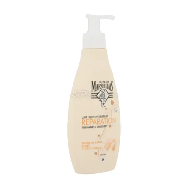 Le Petit Marseillais a associé 3 merveilleux ingrédients dans cette recette de Lait Soin Hydratant Réparation pour peaux abîmées et desséchées