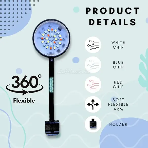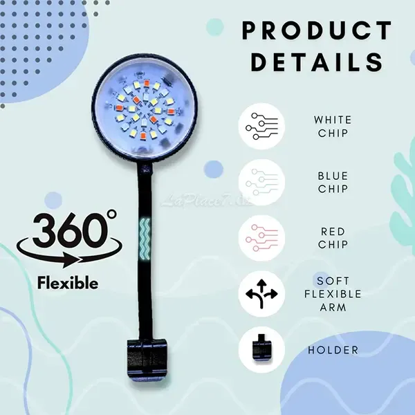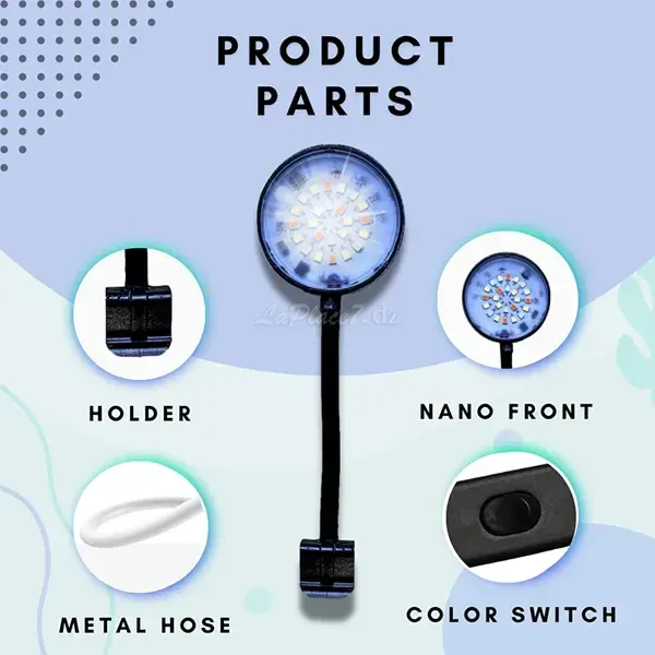 - Contrairement aux ampoules à incandescence ou traditionnelles, les éclairages pour aquarium sont directionnels. Grâce à notre bras flexible, vous bénéficiez d'un contrôle total de l'éclairage. Vous pouvez facilement ajuster l'orientation et l'intensité de la lumière de votre aquarium pour créer l'ambiance et le paysage qui vous conviennent le mieux.