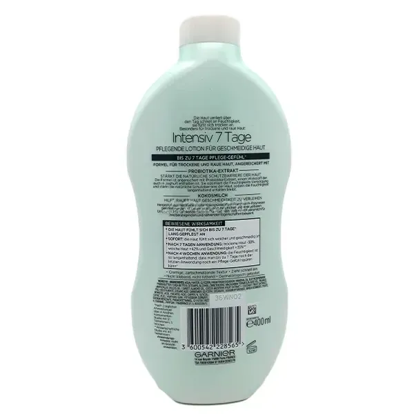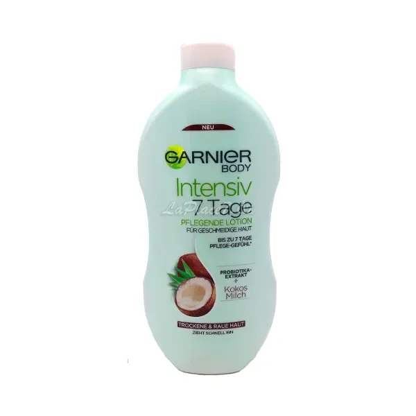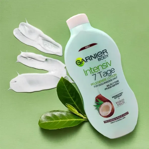 Lorsque vous appliquez une crème hydratante, combien de temps faut-il avant que votre peau ne se sente hydratée ? Garnier prend soin de vous avec la lotion adoucissante intensive de 7 jours offrant une sensation d'hydratation longue durée jusqu'à 7 jours. Cette formule peau sèche et rugueuse est enrichie d'un fragment de probiotique, inspiré des actifs présents dans les yaourts, pour renforcer la barrière protectrice naturelle de la peau et aider à maintenir une hydratation durable. Formulé avec du lait de coco pour aider à adoucir la peau rugueuse. Ce lait de coco d'origine naturelle est fabriqué à partir de la pulpe crémeuse de noix de coco mûres, récoltée en Polynésie française, et est connu pour ses propriétés apaisantes et nourrissantes. La lotion corporelle au lait de coco Garnier absorbe rapidement, non grasse et non collante.