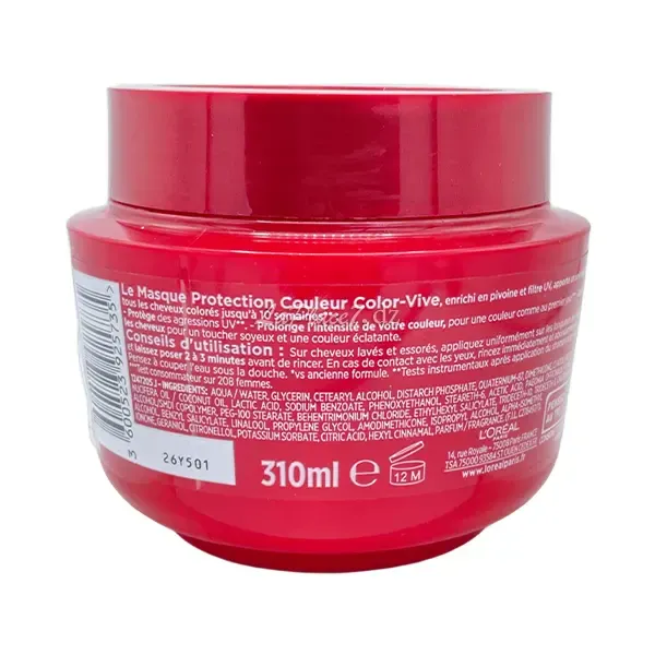 Masque de protection des cheveux colorés ou méchés, Pivoine et filtre UV, Color- Vive, Elseve, L'Oréal, 310 ml