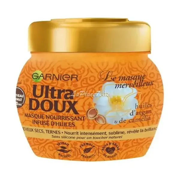 Dans sa nouvelle recette de soin pour les cheveux secs, Garnier Ultra Doux associe deux huiles précieuses aux vertus merveilleuses. Héritée des secrets de beauté des femmes marocaines, l'huile d'argan, aux propriétés hautement nutritives, se mêle à l'huile de camélia, réputée pour apporter éclat et douceur aux cheveux.