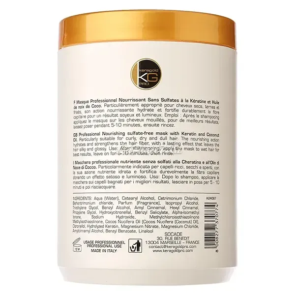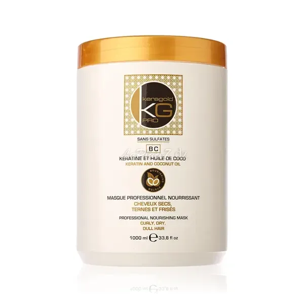 Masque professionnel nourrissant sans sulfates à la kèratine et huile de coco pour cheveux secs, ternes et frisés, BC, Keragold, 1000ml