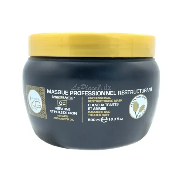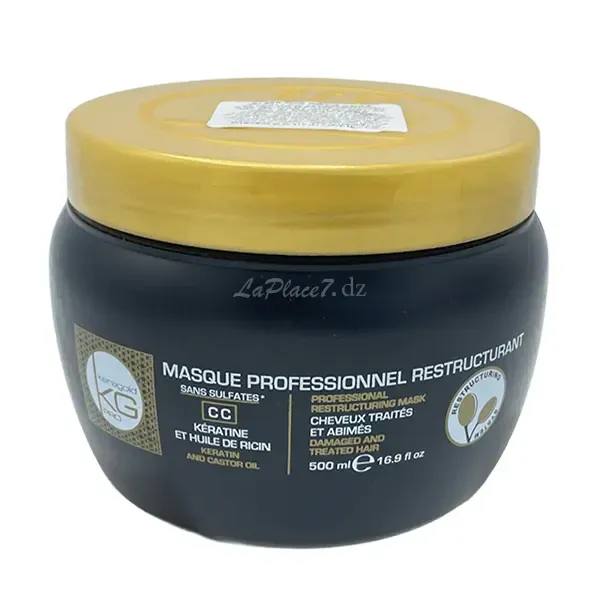 Masque professionnel restructurant pour cheveux traités et abimés a la kératine et huile de ricin, Sans sulfates, CC, Keragold, 500 ml
