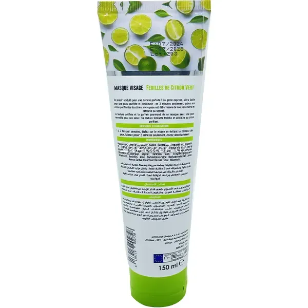 Masque visage aux feuilles de citron vert anti-taches pour peau grasse.