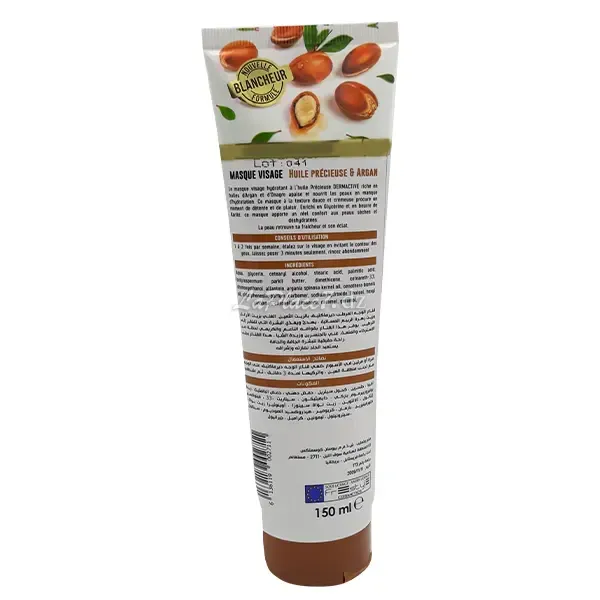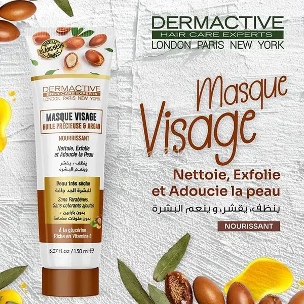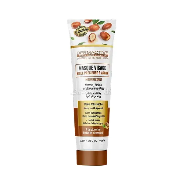 Le masque visage hydratant à l’huile précieuse Dermactive riche en huiles d’argan et d’onagre apaise et nourrit les peaux en maque d’hydratations.