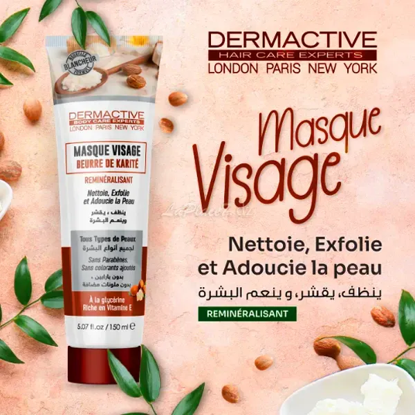 Masque nourrissant pour le visage au beurre de karité de la marque Dermactive.