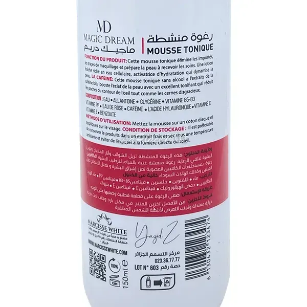 Cette mousse tonique élimine les impuretés les traces de maquillage et prépare la peau à recevoir les soins.