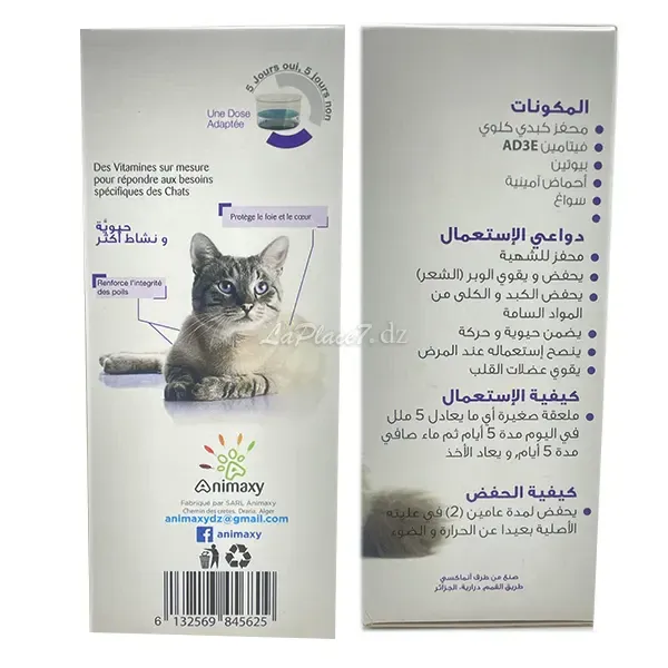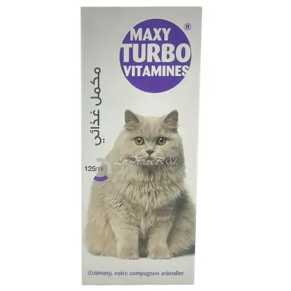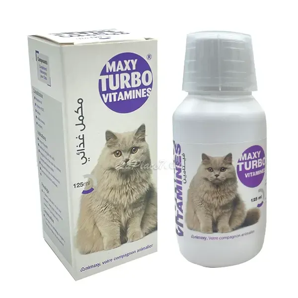 Maxy Turbo Vitamines est un complément alimentaire pour chat qui, grâce à sa composition riche en vitamines A, D3, E, biotine, acides aminés et excipients, stimule l'appétit, renforce l'intégrité des poils, protège le foie et les reins des toxines, favorise la vitalité et la tonicité cardiaque, et est particulièrement recommandé lors des convalescences.