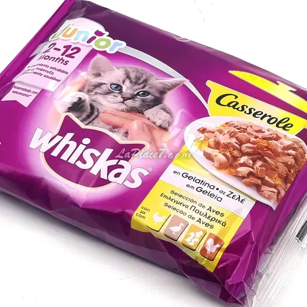 Les Whiskas Casserole sont des sachets pour chats, de délicates boulettes de viande entourées de gelée