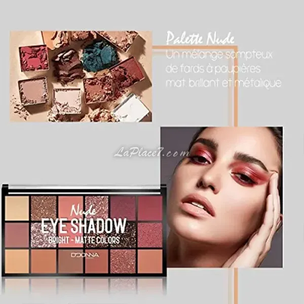 PALETTE NUDE : INCONTOURNABLE POUR TOUTES LES SAISONS ! Depuis maintenant plusieurs années, le « Nude » est d’actualité ! Aussi bien en rouge à lèvres mat qu’en ombres à paupières, le nude est dans l’air du temps et fait le bonheur de toutes les femmes ! Découvrez sans plus tarder la nouvelle palette de maquillage pour les yeux de la marque de cosmétique pas cher D’Donna. Composé de 18 couleurs, vous n’aurez que l’embarras du choix pour changer de style quand vous le souhaitez. S’inspirant des plus grandes marques de cosmétiques, cette palette nude va forcément vous faire tourner la tête ! Constitué de couleurs douce et agréable, vous trouverez dans cette palette nude, 3 styles de fards à paupières différant afin de créer le look que vous souhaitez. En première partie, nous vous parlerons de ces couleurs mates et naturelles. Ces couleurs naturelles seront passes partout et conviendront parfaitement à toutes les couleurs de yeux et de carnations. En seconde partie des couleurs irisés afin de faire ressortir vos yeux et de mettre un peu de brillance à votre regard. Parfait pour un maquillage de soirée ou de tous les jours. Et pour terminer …. 2 nuances de pigments intenses ! Pour briller de 1000 paillettes, ces pigments de couleurs or et cuivrés feront de vos yeux une arme de séduction. Cette palette d’ombres à paupières nude, vous offrira une multitude de possibilité pour un fini lumineux et hautement pigmenté.
