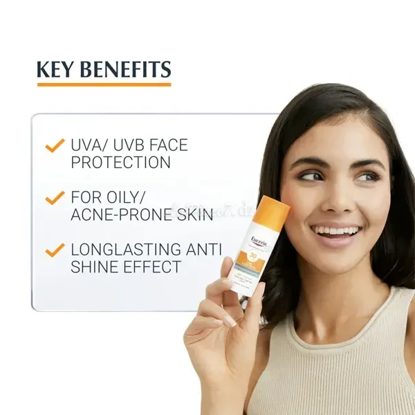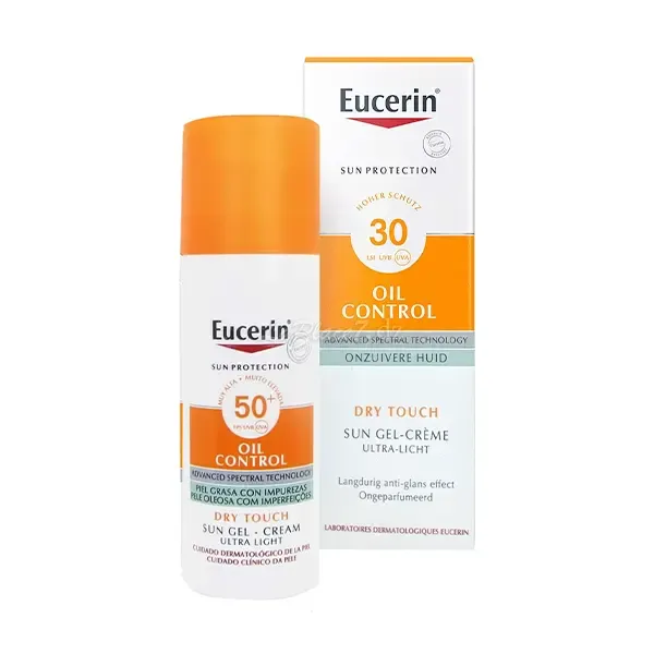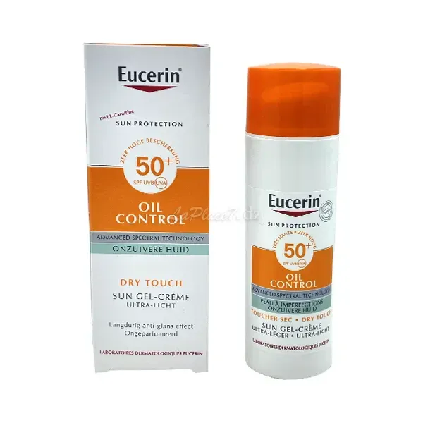 Eucerin Oil Control Dry Touch Sun Gel-Cream SPF50+ 2x200ml est un écran solaire qui aide à apaiser les peaux sensibles et à les protéger des dommages causés par le soleil.