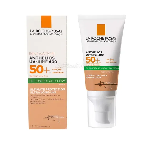 Anthelios UVMUNE 400 Gel-Crème Oil Control SPF50+ au MEXORYL400, le filtre UV le plus efficace contre les UV les plus insidieux* : Effet ULTRA-LONG et matifiant. Teinté pour une couvrance légère et un fini naturel. Protection avancée à large spectre (UVB + UVA même jusqu’aux UVA ULTRA-LONGS) pour les peaux grasses.