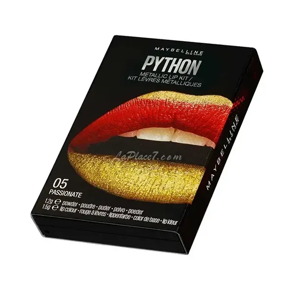 Le kit Python duo metallic, un rouge à lèvres rouge intense enrichi de poudre d'or effet lumière.