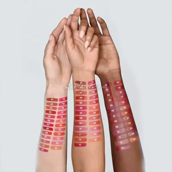 Il est riche en vitamines E et C, ainsi qu'en cire d'abeille. Sa formule baume glisse sur les lèvres en les hydratant et en leur donnant un fini mat satiné. De plus, sa tenue est longue.