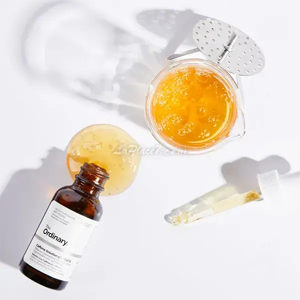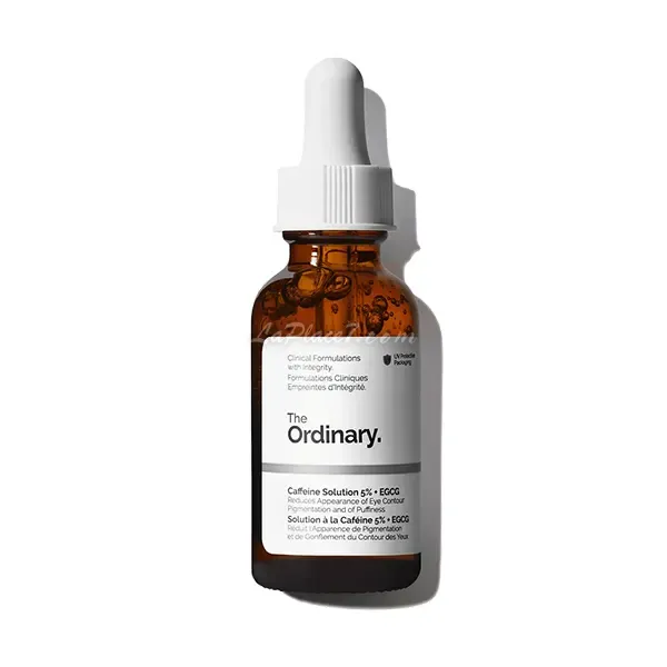 La solution de caféine 5 % + EGCG est un sérum à base d'eau qui réduit l'apparence des poches et des cernes du contour des yeux.