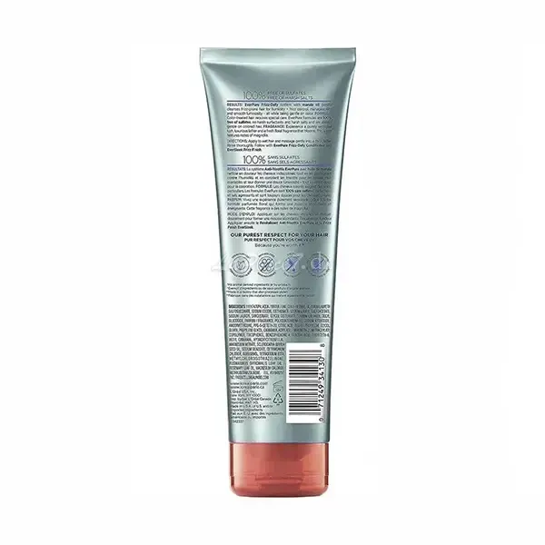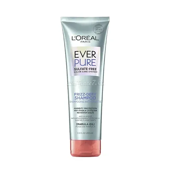 Le shampoing anti-frizz Ever Pure à l'huile de murala nettoie en douceur les cheveux indisciplinés, les protège contre l'humidité et contrôle les frisottis, ce qui les rend plus maniables et leur donne une douce luminosité, tout en étant doux pour la coloration.