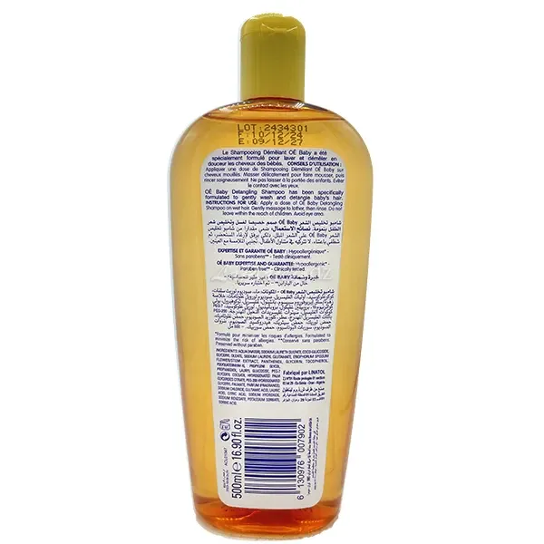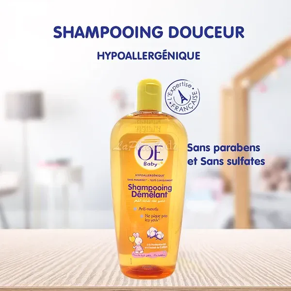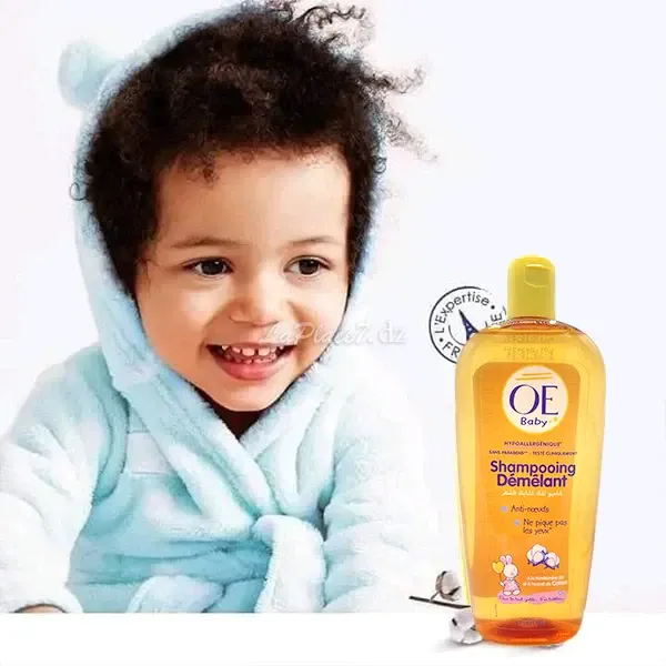 Le shampooing "Oé baby" pour enfants est à base de provitamine B5 et d'extrait de coton. Sa formule hypoallergénique est sans parabènes et a été testée cliniquement.