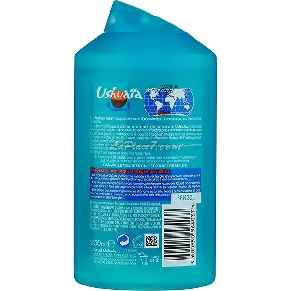 Shampooing Douche rafraichissant Ushuaïa, aux Minéraux Marins de l'Atlantique : - Un parfum à la fraicheur extreme, aux accords marins qui réveillent vos sens - Une douche engagée par nature: flacon en plastique recyclé et formule végan - Une formule respectueuse : PH neutre et testé sous- contrôlé dermatologique En un seul geste, le shampoing & douche Fraîcheur Intense lave en douceur vos cheveux et votre corps. Sa formule enrichie en Minéraux Marins de l'Arctique leur apporte pureté et douceur.