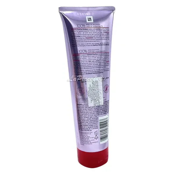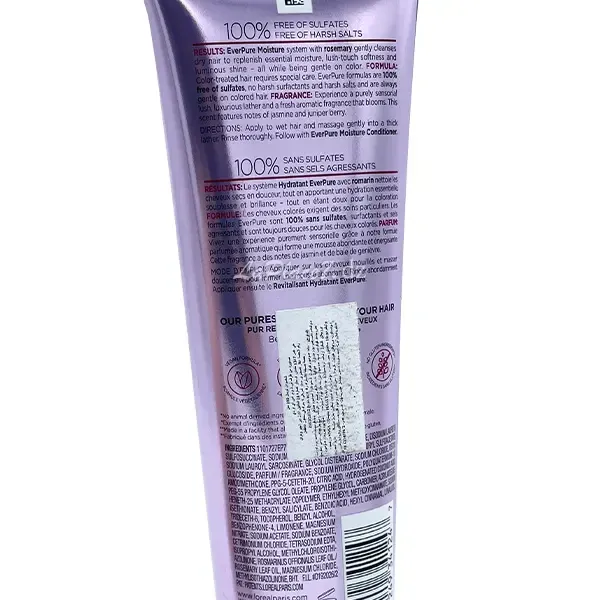 Le shampooing EverPure Moisture au romarin régénère en profondeur les cheveux secs avec 2X plus d’hydratation une douceur au toucher luxuriante et une brillance lumineuse.