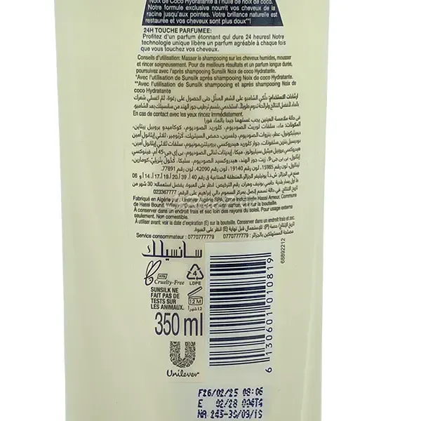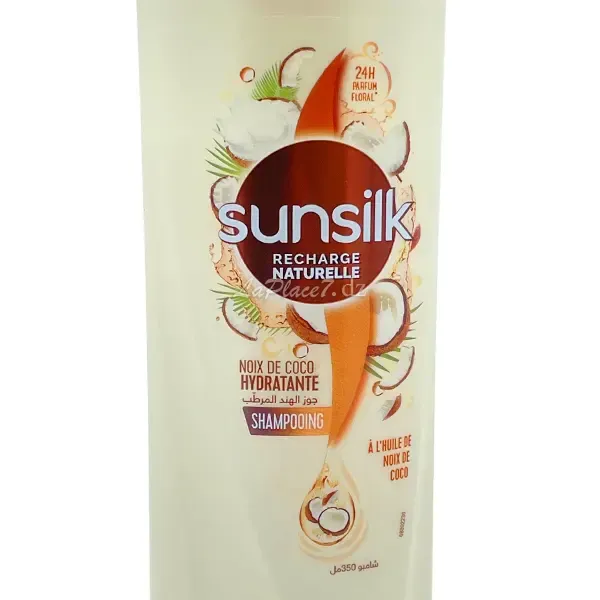 Shampoing hydratant à l'huile de noix de coco, 24H parfum floral, Recharge naturelle, Sunsilk, 350ml