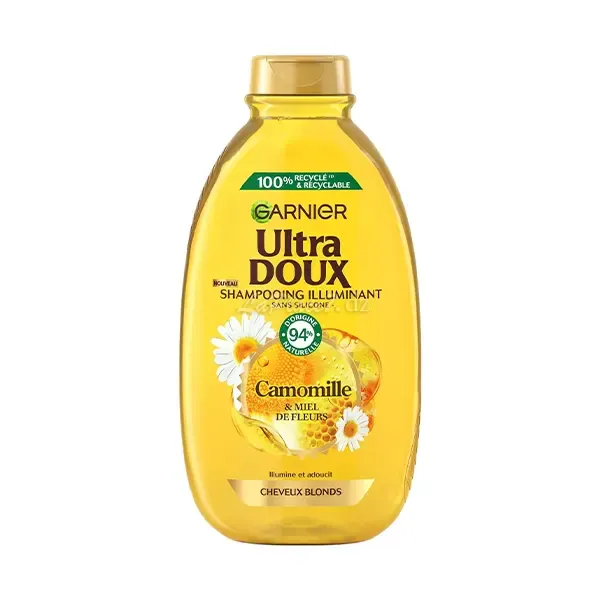 Le shampooing Ultra Doux Camomille & Miel de Fleurs de Garnier est notre remède illuminant pour des cheveux blonds lumineux,