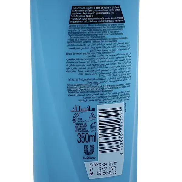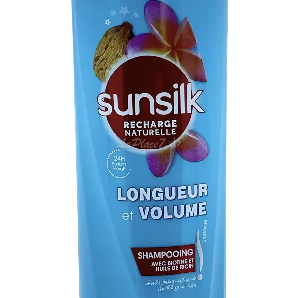 Shampoing longueur et volume a l'huile de ricin et la biotine, 24H parfum floral, Recharge naturelle, Sunsilk, 350ml