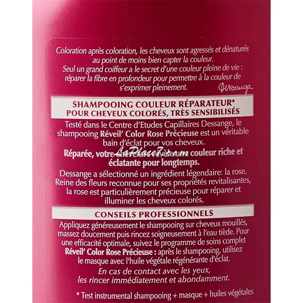 Shampooing couleur réparateur à la rose régénérant d'éclat pour cheveux