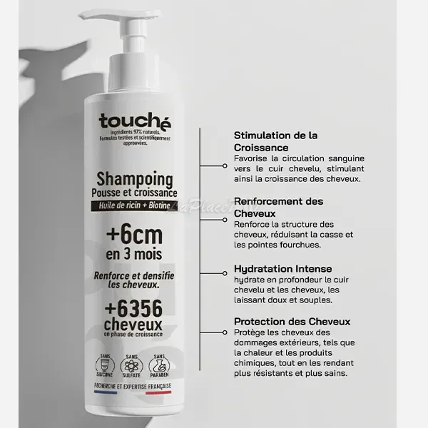 Accélère la pousse des cheveux de 60%, permettant une croissance impressionnante de jusqu'à 6 cm en seulement trois mois.