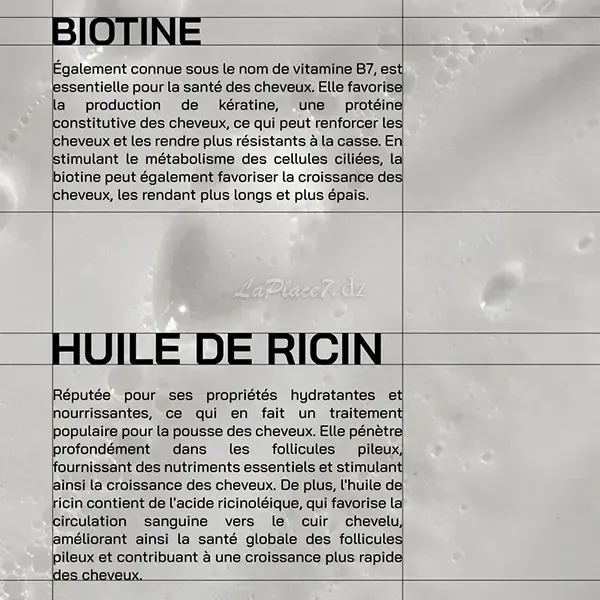Ce shampooing enrichi en biotine, vitamine B5, kératine, ginseng, huile de ricin et caféine.