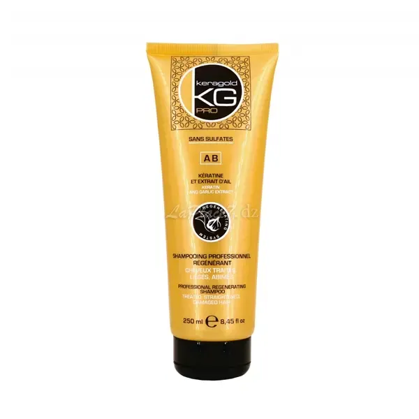 La gamme régénérante sans sulfate à la Kératine et extrait d’ail. Idéal pour cheveux traités, lissés et abimés, soumis aux colorations et décolorations