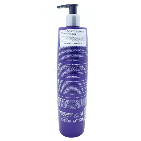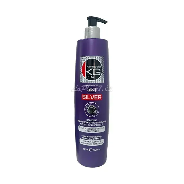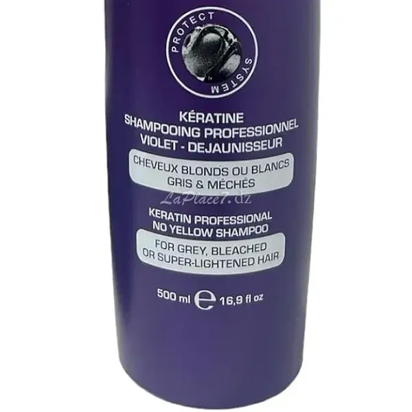 Un shampooing professionnel enrichi en kératine et agents anti-jaunissement pour cheveux blonds, blancs ou gris.