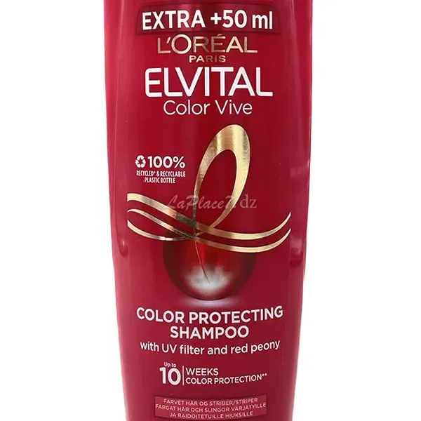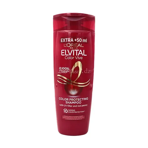 Shampoing protecteur de couleur pour cheveux teints et décapés, avec filtre UV et pivoine rouge, Color vive, Elvital, L'Oréal, 300 ml