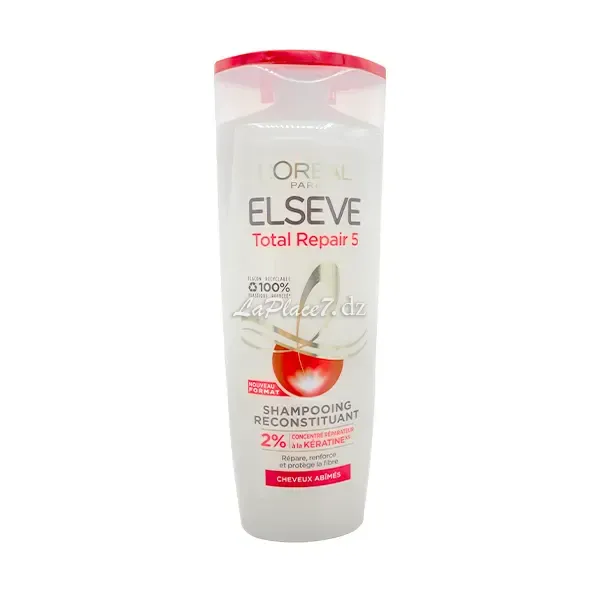 Le shampoing Reconstituant Total Repair 5, enrichi à 2 % de concentré réparateur à la kératine xs, ravive instantanément les cheveux très abîmés.