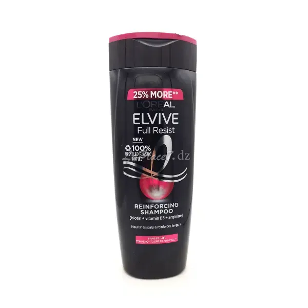 Le shampooing Full Resist, à la formule transparente et sans silicone, aide les cheveux fragilisés, nourrit le cuir chevelu et renforce la fibre. Il renforce les longueurs et le protège contre la casse au quotidien.