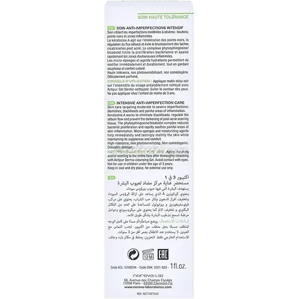 La crème Actipur Noreva 3 en 1 est spécialement recommandée pour les peaux sensibles à imperfections et grasses