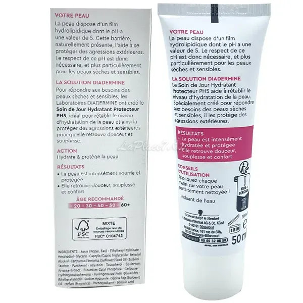 Soin de jour PH5 pour peaux sèches et sensibles, Hydratant protecteur, Diadermine, 50ml