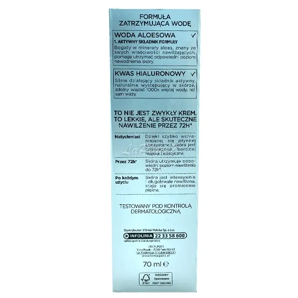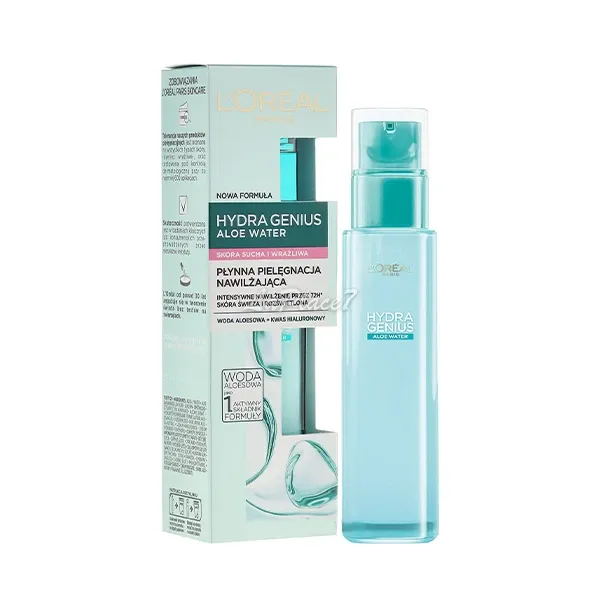 Soin hydratant liquide pour peau sèche et sensible, Eau d’aloe et acide hyaluronique, Hydratation 72h, Hydra Genius, L'Oréal, 70 ml