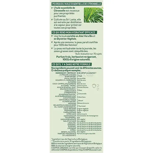 Résultats : Une peau hydratée toute la journée et des zones grasses rééquilibrées, Effet matifiant.