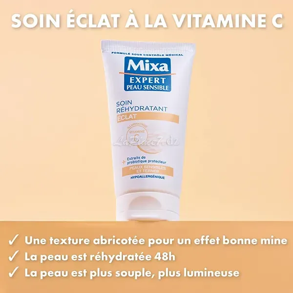 Soin Visage Réhydratant Eclat de Mixa, le soin vitaminé pour une peau éclatante de santé. VITAMINE C: connue pour illuminer le teint et protéger la peau contre les agressions extérieures.