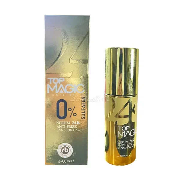Sérum 24K anti-frizz sans rinçage, 0% Sulfates, Top Magic, 80ml
