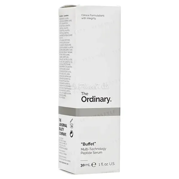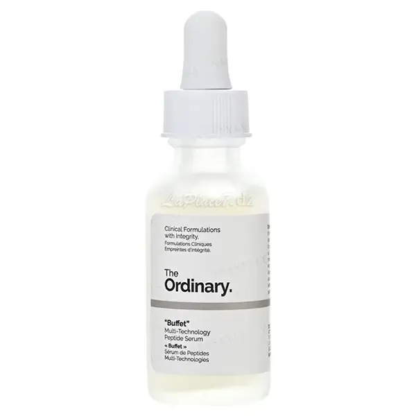 Buffet est un sérum visage anti-âge à base de peptides multi-technologies, conçue par la marque The Ordinary. La formule du sérum « Buffet » est polyvalente puisqu’elle associe hydratation et action anti-age. Il s’agit d’un sérum contenant un concentré de peptide anti-age, un probiotique, des acides aminés et de l’acide hyaluronique qui mérite d’être intégrer dans votre routine beauté. Le sérum visage Buffet est utilisé pour prévenir et lutter contre les premiers signes du vieillissement cutané, tels que les ridules, les rides, ou encore les irrégularités de texture.