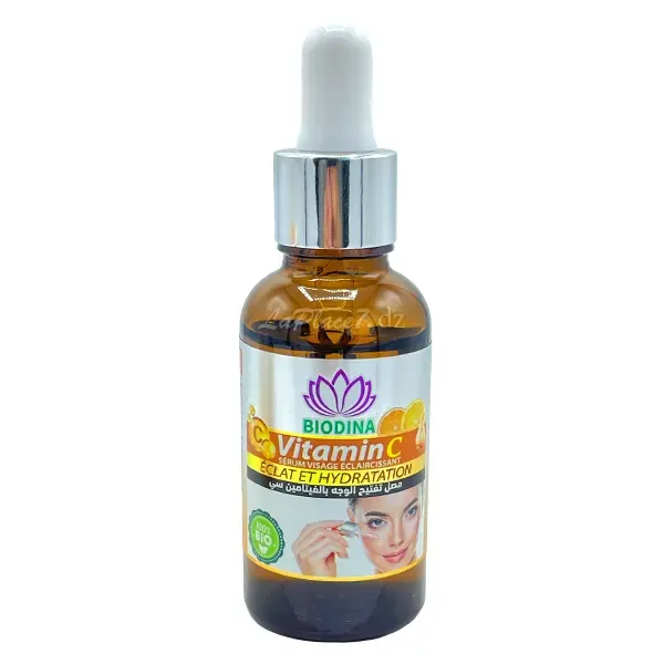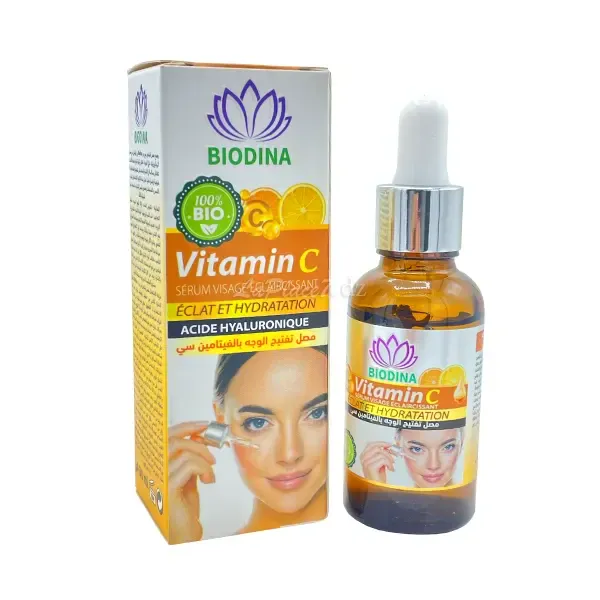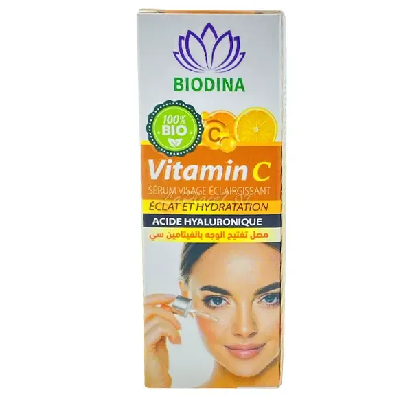 Sérum visage éclaircissant à la vitamine C, Acide hyaluronique, Biodina, 30ml