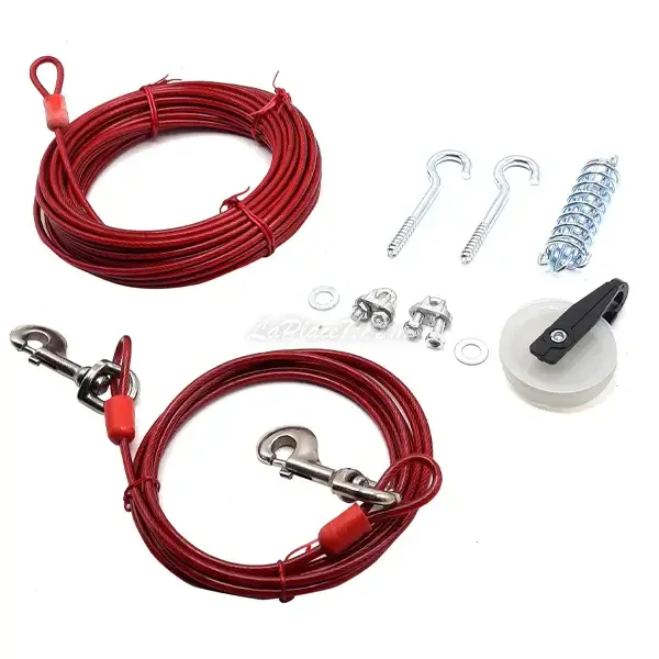 Système de chariot de 15M pour chien avec cable d'attache de 3M, Heavy duty, Xiaoxin